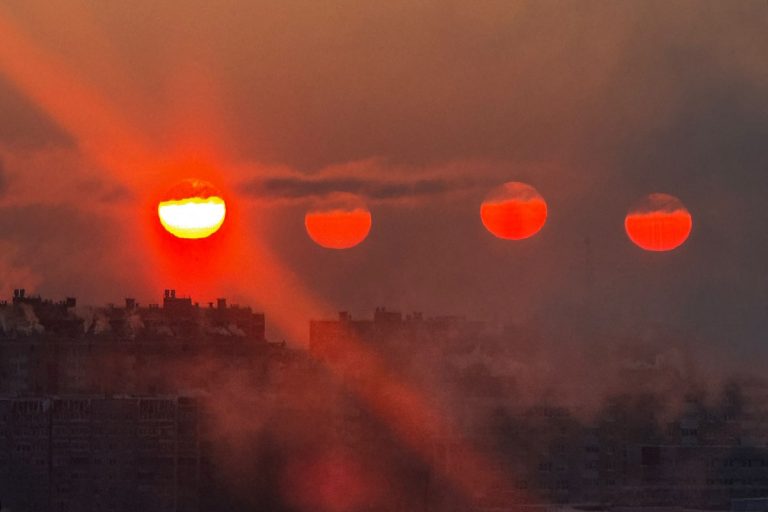 Сразу несколько солнечных дисков можно было наблюдать на восходе.