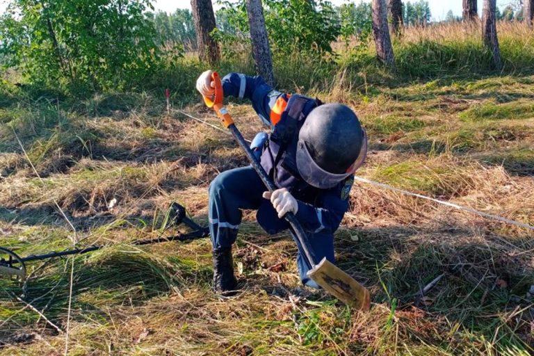 «За рабочий день сотрудники исследуют 1-1,5 га, находят несколько десятков взрывоопасных предметов, среди которых встречаются артиллерийские снаряды с взрывателем, минометные мины, ручные гранаты»,