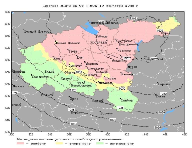 Согласно данным Гидрометцентра России, метеоусловия, способствующие накоплению вредных веществ в приземном слое атмосферы, сформируются на большей части территории Тверской области, в том числе и в Твери, в период с 18:00 до 20:00 вторника, 9 сентября, и с 3:00 до 9:00 среды, 10 сентября. К утру среды благодаря циркуляции воздуха все примеси будут рассеиваться.