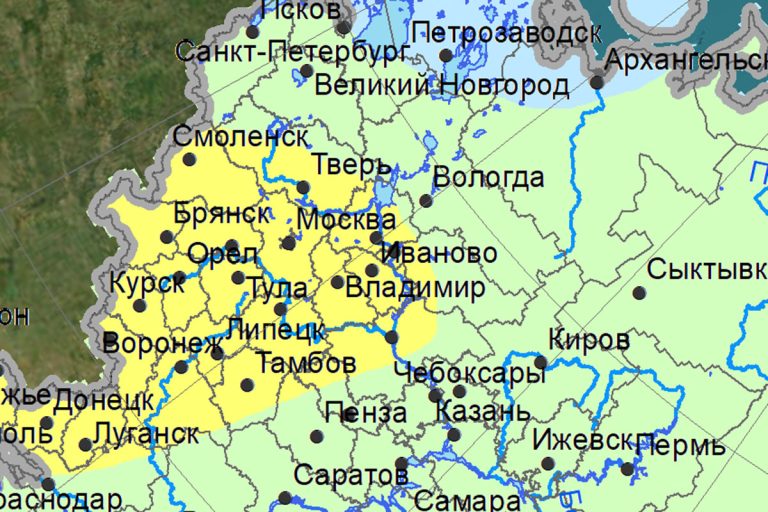 Месячное количество осадков предполагается на большей части территории Тверской области меньше многолетнего количества, лишь в северных районах региона прогнозируется осадков в пределах нормы.