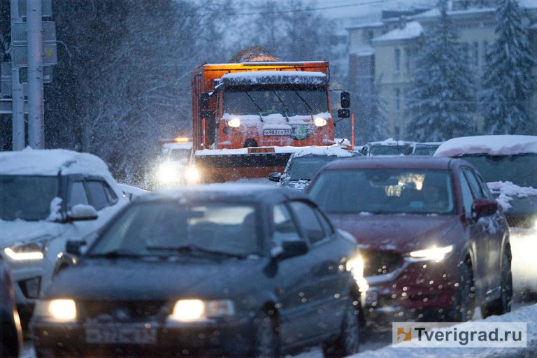 Дорожные машины в полном объёме поехали по городу вместе с тверичанами, которые добирались на работу: уборочная техника была вынуждена вместе со всем стоять в пробках.