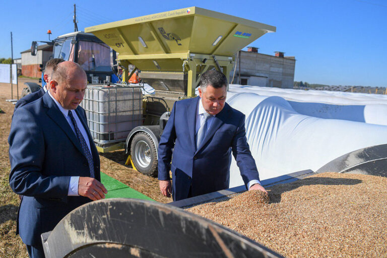 Губернатор Игорь Руденя в Торжокском округе ознакомился с работой колхоза «Мир».
