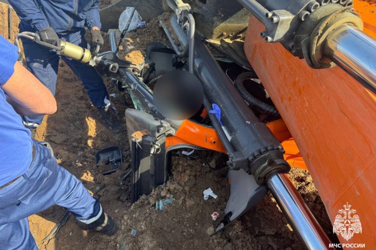 21 апреля в Калининском округе возле деревни Новое Семеновское опрокинулся экскаватор. Водитель оказался зажат в кабине.