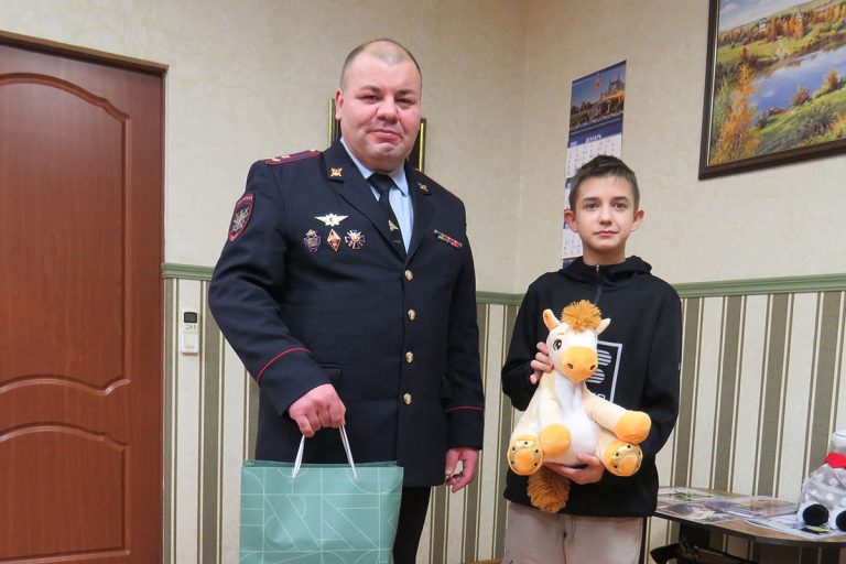 Вместе со старшим воспитателем и другими воспитанниками школы-интерната Андрея пригласили в Тверской линейный отдел МВД России на транспорте, где руководитель ведомства после знакомства с гостями вручил подростку серию познавательной литературы.