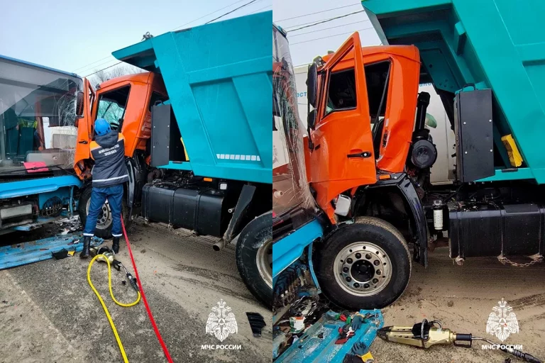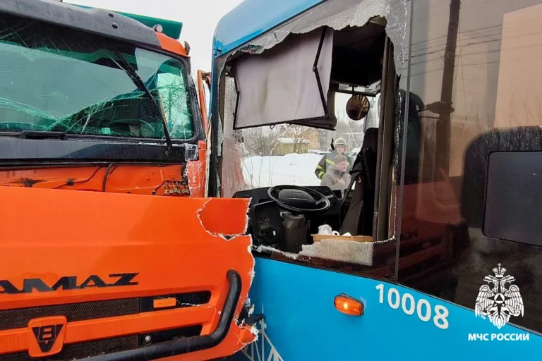 Как удалось выяснить Tverigrad.ru, виновником ДТП стал водитель КамАЗа. Мужчина двигался в сторону площади Гагарина и начал объезжать автобус, который, двигаясь попутно ему, остановился на остановке для посадки и высадки пассажиров. В итоге водитель самосвала не справился с управлением, в результате чего выехал на встречную полосу и лоб в лоб столкнулся с автобусом, двигавшемся во встречном направлении.