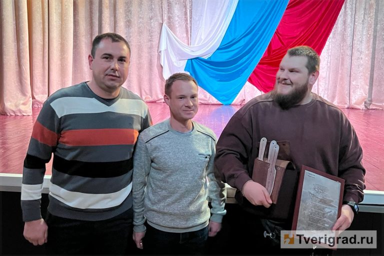 Отдельно отметили мобилизованного Артёма Кожухова. С юности уроженец поселка Редкино увлекался единоборствами. Во время боев в зоне специальной военной операции, куда он попал осенью 2022 года после мобилизации, он был тяжело ранен. А потом стал первым в истории чемпионом Тверской области среди мужчин по спортивному метанию ножа с поражением опорно-двигательного аппарата. Поэтому и подарок ему вручили соответствующий — красивые отточенные ножи с гравировкой.