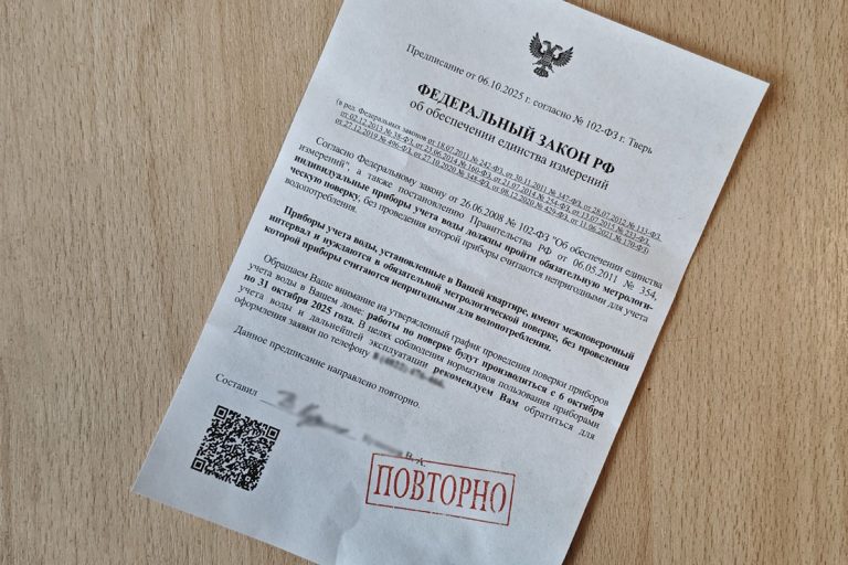 С жалобой на введение в заблуждение в УФАС обратился житель Твери, который нашёл в своём почтовом ящике фейковое «Предписание» о срочной поверке счетчиков.