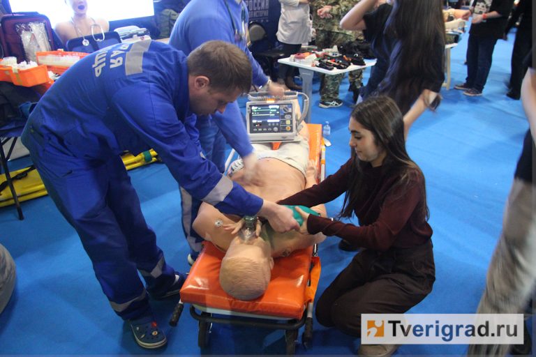 – Всем нравится, всем интересно. Мы объясняем, как делать непрямой массаж сердца, как проводится искусственная вентиляция лёгких, потом подключаем медицинское оборудование – разные виды дефибрилляторов и др., – раскрыл тему начальник центра практических навыков Тверской станции скорой медицинской помощи Василий Ракитин. – Также показываем, как устроена внутри сама машина «скорой».