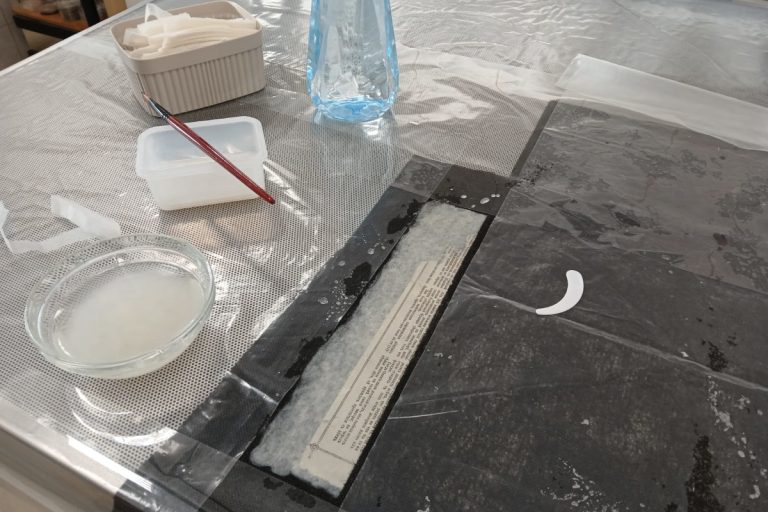Процесс доливки. Фото: архив Центра реставрации библиотеки имени Горького.