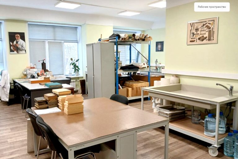Миллион раз проходя мимо неприметной двери по коридору третьего этажа, я и подумать не мог, что в противовес скромности интерьеров XX века за ней скрываются интерьеры и оснащение лабораторий XXII века. В 2021 году там появилось новейшее оборудование, решающее абсолютно новые задачи – вакуумный стол, стол с подсветкой, специальный пылесос, пресс для книг и мн.др.