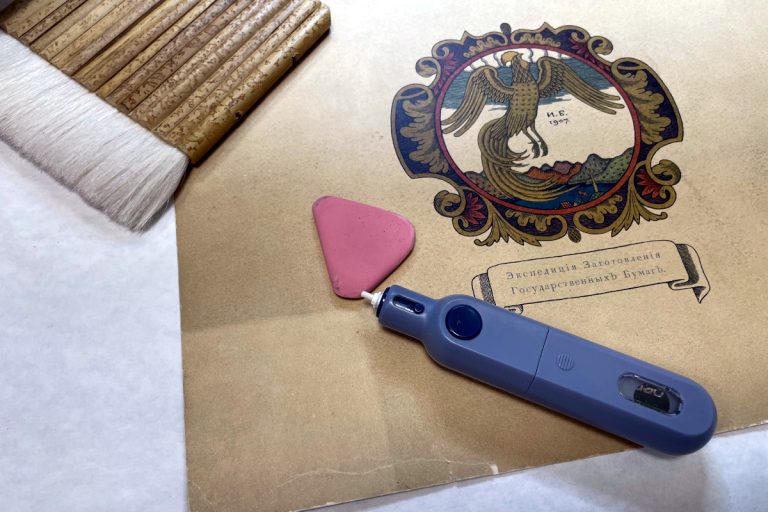 Механическая очистка. Фото: архив Центра реставрации библиотеки имени Горького.