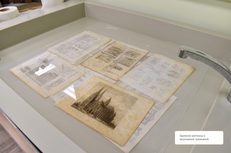 Промывка. Фото: архив Центра реставрации библиотеки имени Горького.