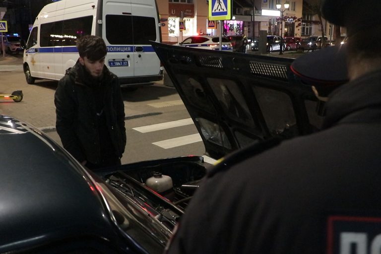 Следом за «Приорой» по бульвару ехал ВАЗ 2107, в котором и водитель и пассажиры – гости из южных регионов России. А у самой машины передняя часть задрана вверх, задняя явно сильно занижена. С этими ребятами разговор такой же, а заодно и полная проверка документов пассажиров.