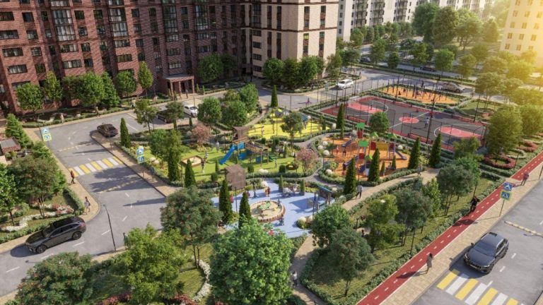 Во дворе — зона отдыха для взрослых, места для занятий спортом и прогулок с малышами и собственная скейт-площадка.