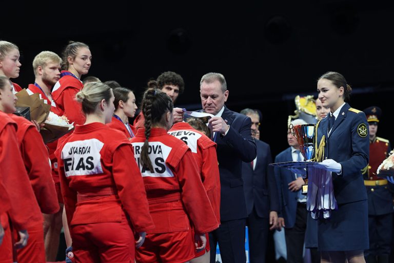 Бийсултан Хамзаев наградил самбистов за индивидуальные достижения – лучшую технику среди женщин, лучшую технику среди мужчин в спортивном и боевом самбо, за самую быструю схватку среди женщин и мужчин.