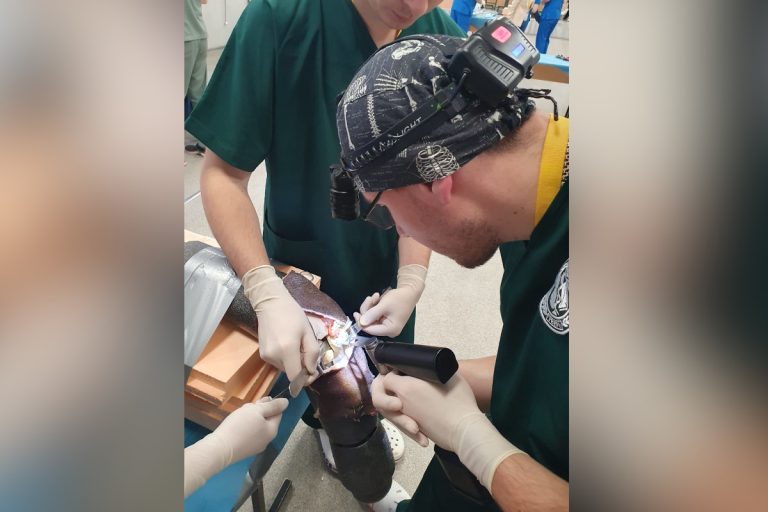 Ребятам предложили конкурсную и теоретическую часть, в рамках которой они показали высокий уровень подготовки и мастерства. В качестве клинической задачи тверичанам нужно было выполнить задний доступ к локтевому суставу с остеотомией (распил или разрез кости для исправления её формы, положения или длины. – Ред.) локтевого отростка, остеосинтез (соединения и фиксации частей кости) дистального конца левой плечевой кости, а также произвести остеосинтез локтевого отростка по Веберу.