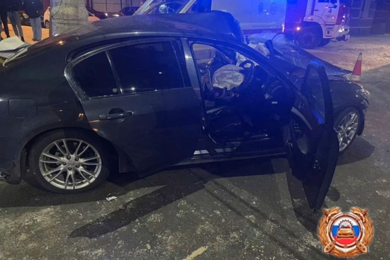 По предварительным данным, водитель легкового праворульного автомобиля Nissan не выбрал безопасную скорость и не справился с управлением, в результате чего машину занесло, и она врезалась пассажирской стороной в бетонную мачту уличного освещения.