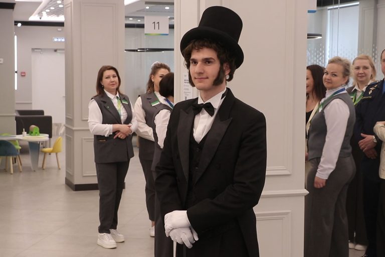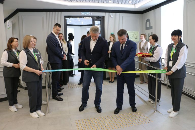 Так, в этом году в Верхневолжье при поддержке Сбера были обновлены восемь офисов. Один из них – в Торжке, где исторические мотивы соседствуют с цифровыми решениями: на стенах размещены панно с цитатами из произведений А.С. Пушкина и яркие постеры с видами города, созданные нейросетью.