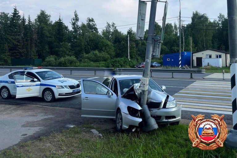 8 июля на 191-м км трассы М-10 в Калининском округе автомобиль столкнулся со столбом, сообщили в управлении Госавтоинспекции Тверской области.