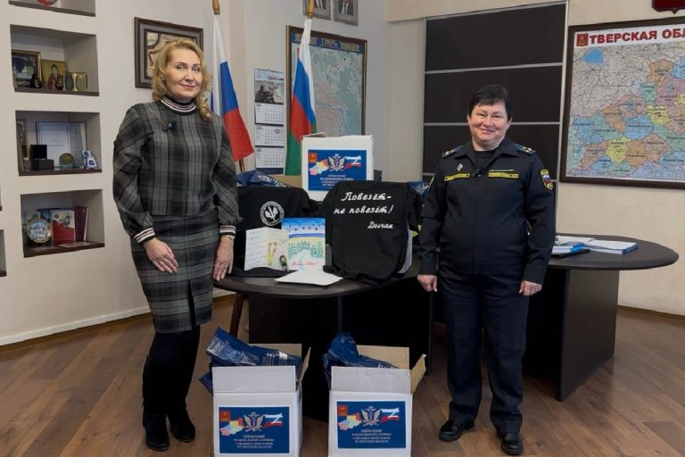 А руководитель ведомства — главный судебный пристав Тверской области, полковник внутренней службы Надежда Геннадьевна Семёнова лично передала подарки супруге одного из бойцов, находящихся в зоне СВО.