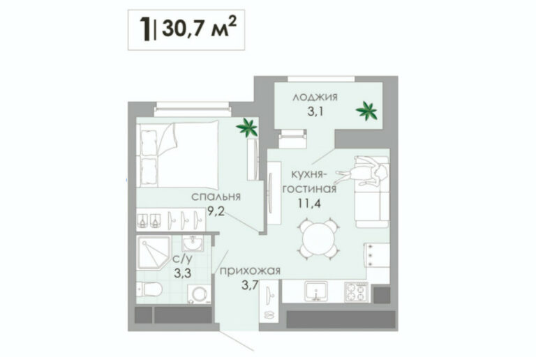 Так, первый взнос за однокомнатную квартиру 30,7 квадратных метра с уютной спальней в жилом квартале класса бизнес-лайт «ТОТ» обойдётся всего в 222 000 рублей.