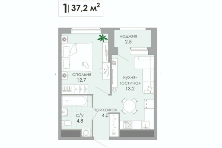 А первый взнос за квартиру 37,2 квадратных метра с большой кухней-гостиной и лоджией обойдётся всего в 270 000 рублей.