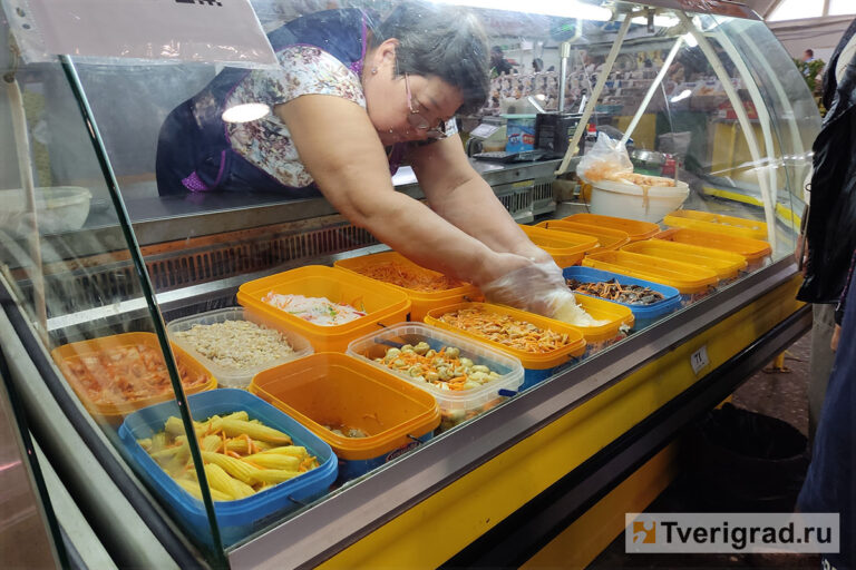 А потому рядом с сырами и колбасами находится ещё одна «фишка» рынка – это готовые корейские салаты. Тут тебе и морковь, и спаржа, и опята, и шампиньоны. И эта витрина сразу привлекает покупателя запахом специй и яркими красками готового продукта. Стоимость таких салатов за сто граммов начинается от 70 рублей и, в зависимости от разновидности, достигает до 250 рублей. Например, за сто граммов опять с морковью по-корейски покупатель отдаст 150 рублей. Именно эти два прилавка с корейскими (как принято считать у нас) салатами становятся сегодня точкой притяжении для многих тверичан, которые уже привыкли к такой кухне.