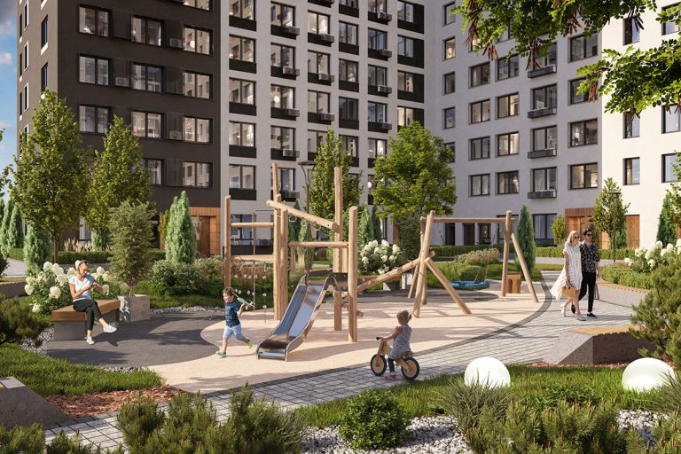 Проектировщики квартала позаботятся и о том, чтобы ребятам во дворе не было скучно. Умная детская площадка, предусматривающая множество активностей и зонирование для разных возрастов, легко составит конкуренцию гаджетам. А утопающие в зелени лаундж-зоны дадут ребятам возможность отдохнуть после подвижных игр и приютят освободившихся от забот родителей с книгой или кружкой кофе. К слову, под озеленение в ЖК «ТОТ» планируют выделить рекордные для девелопера «Новый Город» 60% площади.