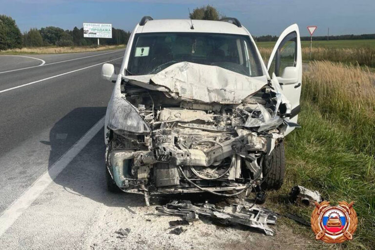 После столкновения один из автомобилей съехал в кювет.