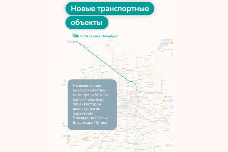 Кроме того, на схеме показали маршрут первого этапа ВСМ Москва — Санкт-Петербург — от Москвы до Твери, строительство которого уже началось.