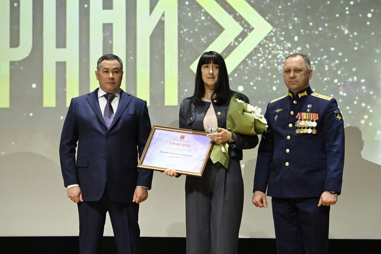 Награду Надежде Кудрявцевой вручили губернатор Игорь Руденя и Герой России, участник СВО Александр Карамышев.