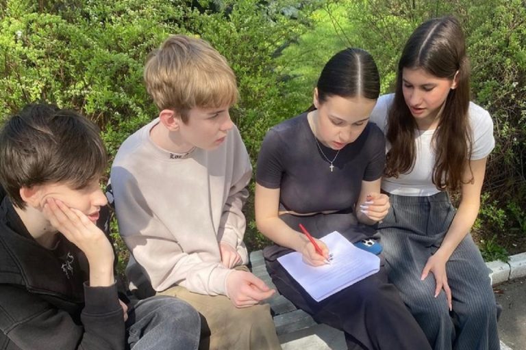 Вчера девятиклассники гимназии ТвГУ посетили необычный урок английского языка. Преподаватель Светлана Зимогляд провела викторину на тему «Великие люди России и мира» в уникальном формате — на свежем воздухе. Занятие состоялось в уютном сквере у бюста П.П. Максимовича, выдающегося педагога, чьё имя носит гимназия.