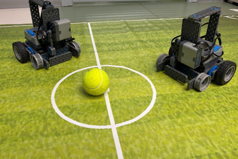 Робофутболистами управляли команды учеников, которые собрали своих собственных роботов из конструкторов VEX IQ и написали программы для их управления.