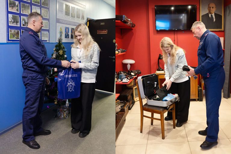 Совместно с сотрудниками следственного управления Следственного комитета она погрузилась в таинственный мир раскрытия преступлений, выступив в роли следователя в деловой игре по делу о хищении ценного экспоната в музее криминалистики.
