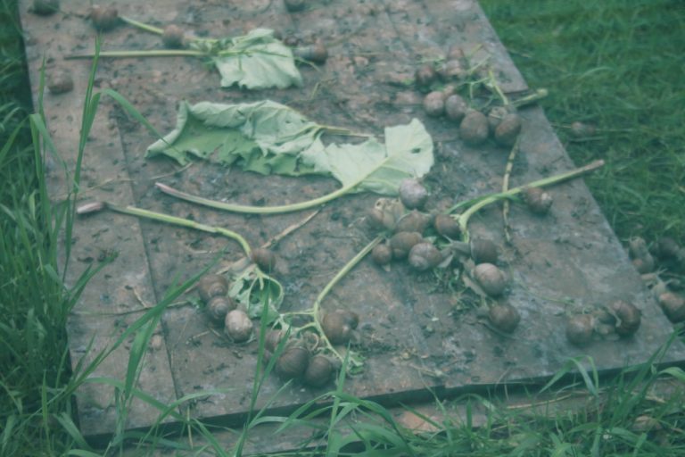 Внутри построек брюхоногие моллюски ели листья лопуха, «целовались» и, наверное, недоумённо рассматривали гостей. Хотя, согласно исследованиям, видят они недалеко и только в чёрно-белом спектре.