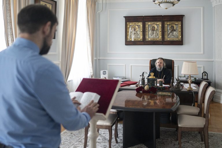 «Архипастырь пообщался с абитуриентами и проверил у них знание молитв и тропарей двунадесятых праздников, а также навыки чтения на церковнославянском языке. По результатам собеседования одиннадцать абитуриентов получили благословение поступать в бакалавриат Московской духовной академии: трое — на очную форму обучения, шестеро — на заочную, двое — на регентский факультет»,