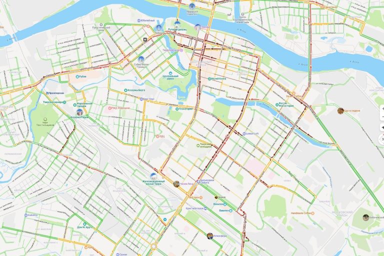 Наибольшее затруднение дорожного движения происходит на улицах Советская, Новоторжская, на Тверском и Волоколамском проспектах, следует из данных сервиса «Яндекс Карты».