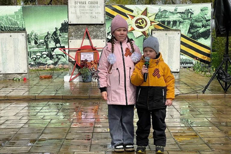 В ходе мероприятия прозвучали проникновенные строки стихотворений о войне, которые зачитали его юные участники Валерия и Алексей Кудряшовы.