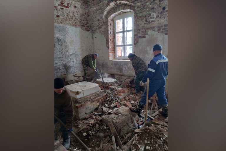1 мая в разрушенном храме расчищали алтарную часть. В работе участвовал настоятель храма, протоиерей Димитрий Кунченко с неравнодушными местными жителями. В прошлом году в церкви вставили окна, поэтому непогода не помешала процессу.