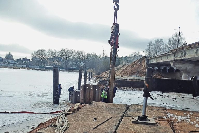 «Подрядная организация завершила работы для выноса сетей, проходящих внутри моста, для тяжёлой строительной техники подготовлены съезды под мост, идёт установка шпунтов Ларсена (это металлические профили с закругленными краями для разделения воды и грунта), которые позволяют проведение работ по установке новых опор моста. Погодные условия позволяют проводить все необходимые работы по капитальным ремонтным работам»,