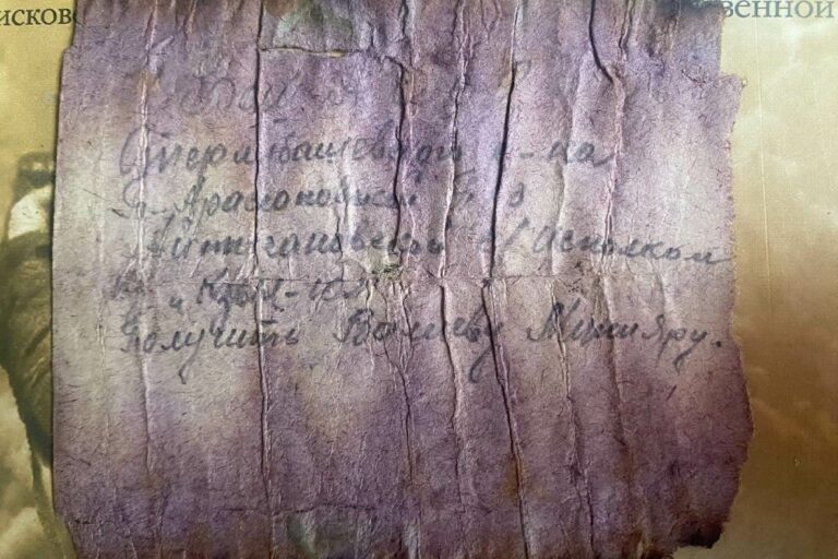 «На исследование были привезены три гильзы, найденные с погибшими бойцами. Третья гильза, пистолетная, хранила в себе трут. А вот две винтовочных оказались с самодельными записками. Одна на титульном листе книги. Обе выполнены карандашом и прочитались глазами, даже сканер не понадобился. Имен самих бойцов не оказалось, лишь имена родных и адрес», — сообщается поисковиками.