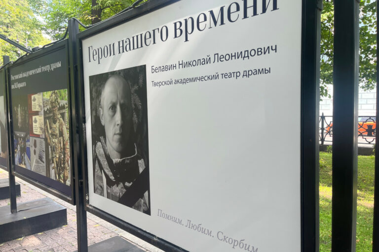 В Нарышкинском сквере на Страстном бульваре в Москве открылась уличная фотовыставка «Герои нашего времени. Театральные деятели на СВО». Организатор – Союз театральных деятелей России. Один из стендов посвящён тверскому работнику театра.