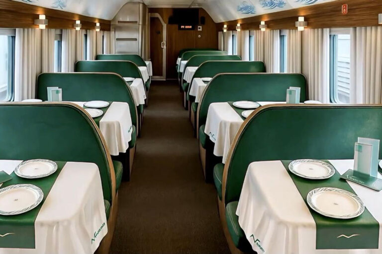 В состав поезда войдут вагоны с местами для сидения стандартной и улучшенной компоновки, купейный штабной вагон, вагон СВ и вагон-бистро.
