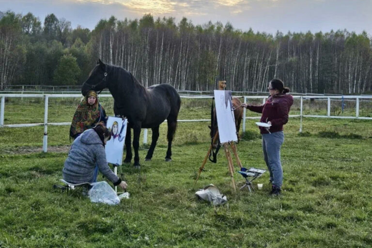 В Ржеве московские художники провели бесплатный мастер-класс с лошадью