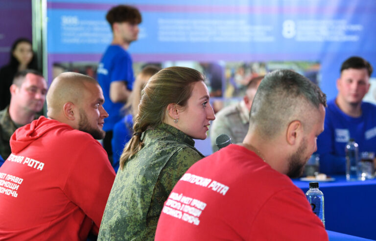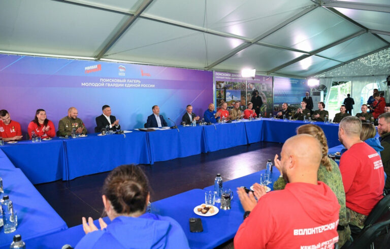 На площадке лагеря состоялась встреча с ветеранами СВО, представителями объединения «Волонтёрская Рота Боевого Братства» и бригады беспилотной авиации ГРОМ «Каскад», поисковых отрядов, участниками «ПолитЗавода» – образовательного проекта «Молодой Гвардии Единой России».