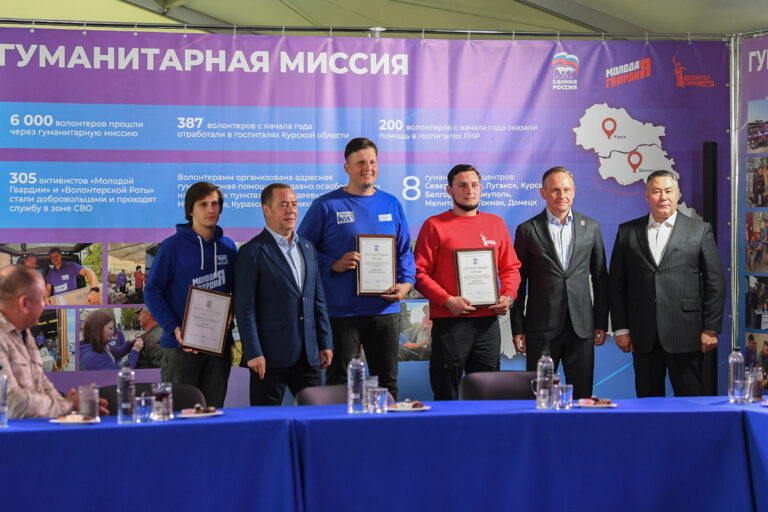 В финале встречи Дмитрий Медведев вручил благодарственные письма участникам гуманитарной миссии в Курской области. Также состоялась церемония отправки в зону СВО добровольцев ГРОМ «Каскад».