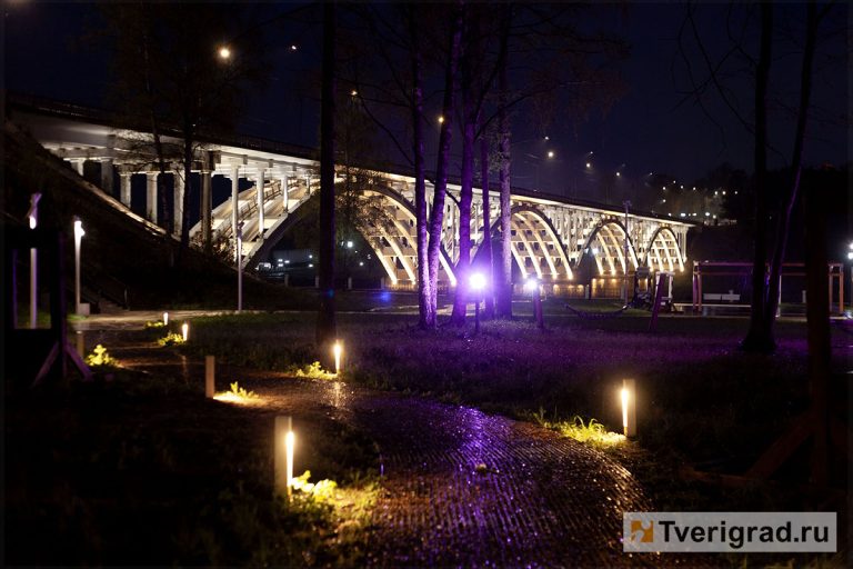 Проект реализовали с учётом архитектурных особенностей сооружения, выделив его ключевые элементы – арочные пролёты. Вечером и ночью подсветка моста дополняет единую световую композицию других достопримечательностей города – набережной Волги, парка «Старицкое Зарядье» и ландшафтного парка около Старицкого Свято-Успенского монастыря.