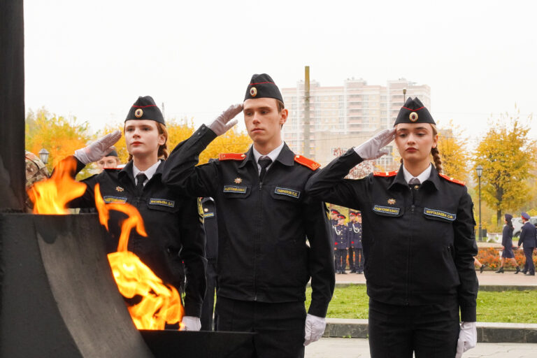 9 октября в мультимедийном историческом парке «Россия – Моя история» прошла торжественная церемония открытия эстафеты «Вместе – к Победе!». Кадеты возложили цветы к мемориальному комплексу «Смоленское захоронение».