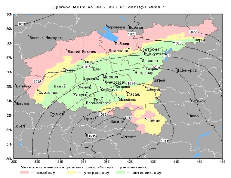 Согласно данным Гидрометцентра России, метеоусловия, способствующие накоплению вредных веществ в приземном слое атмосферы, прогнозируются на большей части Тверской области, в том числе и в Твери, с 19:00 понедельника, 20 октября. Сохранятся они до утра вторника, 21 октября. К утру благодаря циркуляции воздуха все примеси будут рассеиваться.