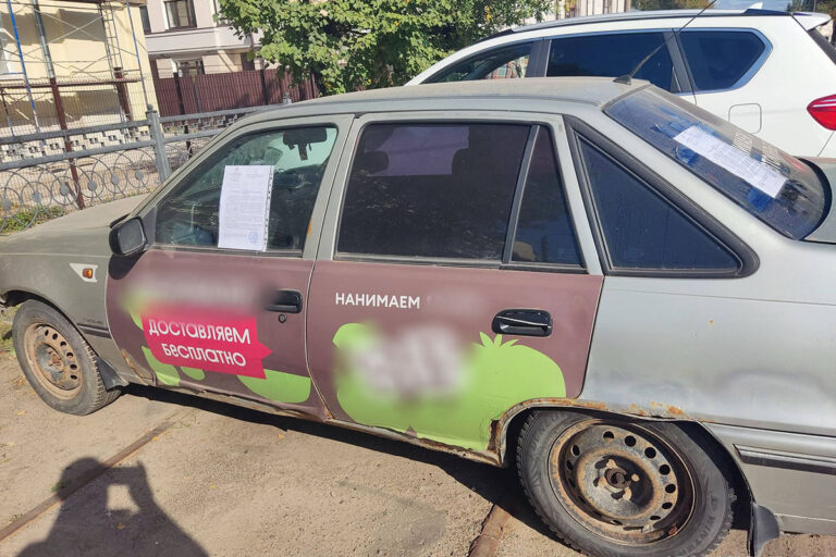 Речь идёт об автомобиле Daewhoo Nexia, оставленном рядом с домом № 39 по улице Спартака. Машина с нанесённой на двери рекламой магазина уже давно гниёт, владелец про неё явно позабыл.